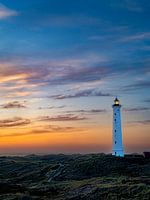 Zonsondergang bij Lyngvig Fyr bij Hvide Sande, Denemarken.