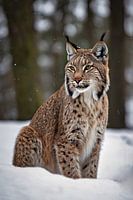 Deze prachtige afbeelding toont een majestueuze lynx in een serene, besneeuwde omgeving. Met zijn opvallende oorpluimen en scherp afgetekende vachtpatroon straalt dit wilde dier kracht en elegantie uit. De rust van de besneeuwde achtergrond contrasteert prachtig met de intense blik van de lynx, wat zorgt voor een fascinerend visueel evenwicht. Dit ontwerp past perfect in een ruimte waar natuur en dierenliefde centraal staan, zoals een kantoor of slaapkamer. Het brengt een gevoel van verbinding met de natuur en de wilde wereld, terwijl het tegelijkertijd een rustig en sereen effect heeft. Een prachtige toevoeging voor liefhebbers van dierenfotografie of natuurkunst.