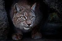 Over ‘Lynx is een grote kat die op de grond zit en ironisch genoeg ergens naar kijkt. close-up.’ van Michael Semenov