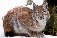 Lynx zit van dichtbij in de sneeuw, een mooie wilde kat.