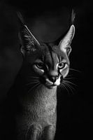 Een majestueus dier met een doordringende blik en elegante oren dat schittert in monochrome schoonheid. Zijn mysterieuze uitstraling trekt de aandacht en geeft een verfijnd accent aan een kamer. Hij is ideaal voor de woonkamer en creëert een harmonieuze link tussen de natuur en een moderne woonstijl.