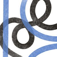 Dit moderne schilderij is gemaakt in een moderne en minimalistische stijl. De twee lijnen, in het zwart en blauw, wisselen elkaar af op het witte canvas.