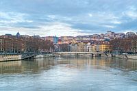 zicht over de Saone in Lyon, Frankrijk met zicht op de kleurrijke huizen van de stad