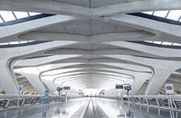 Het lange, moderne perron van het treinstation op vliegveld Lyon Saint Exupéry nabij de stad Lyon.