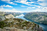 Koop dit landschapskunstwerk Lysefjord gezien vanaf de Preikestolen (Preekstoel) in Noorwegen van Rietje Bulthuis op canvas, aluminium dibond, (ingelijste) fotoprint, behang en ArtFrame, op maat geprint in Fine-Art kwaliteit.