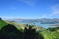 Ongeveer een uur van de stad Christchurch hebben we gewandeld op de Dyers Pass met uitzicht op Governors Bay in Nieuw-Zeeland. De stad Lyttelton is in de verte te zien.