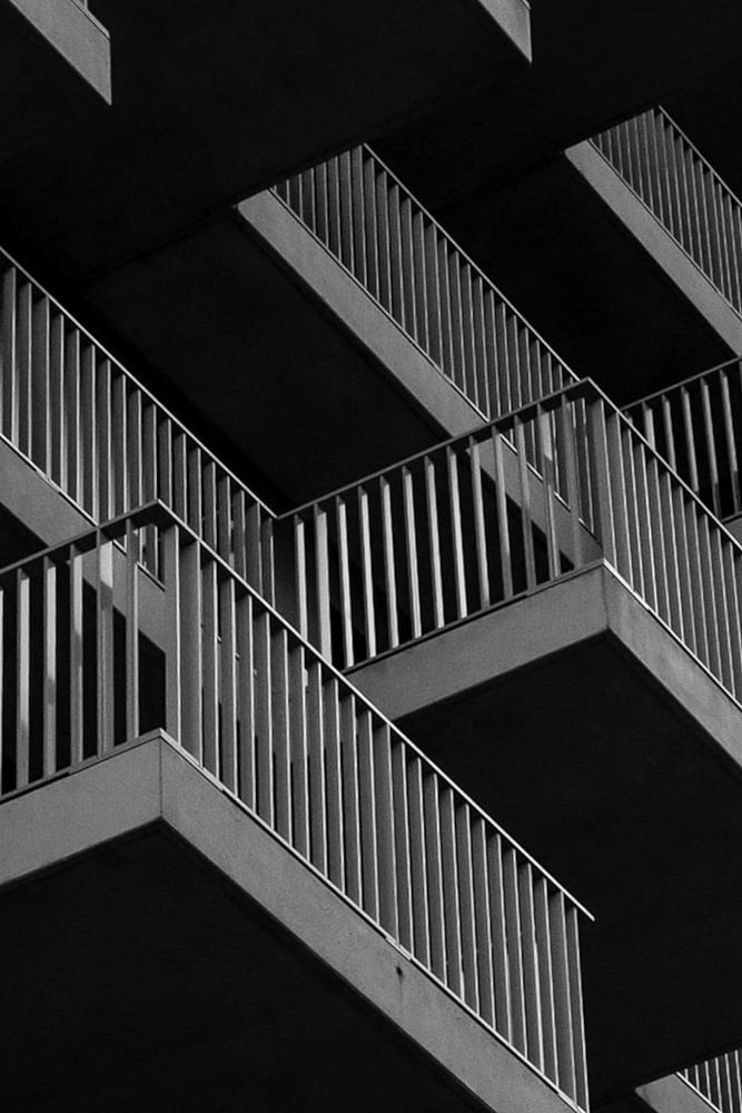 Prachtige, haast grafische, foto van balkons die doet denken aan werk van M.C. Escher.