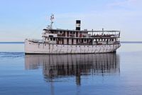 MS Wilhelm Tham vaart over een rustig Vänernmeer. Het in 1912 te water gelaten historisch belangrijke schip vervoert passagiers over de beroemde Götakanaalroute in Zweden.