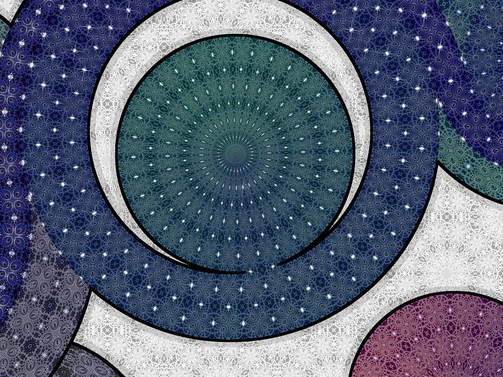 Ik zou graag willen zien hoe het zou zijn als deze constructie zou gaan bewegen op de manier die jij hebt aangegeven. Er zouden zelfs verschillende mogelijkheden zijn, afhankelijk van of het patroon in de loop van de tijd op dezelfde plaats verandert, alleen de kleur verandert, of hetzelfde blijft. Het zou zeker mogelijk zijn om er een video van te maken, maar dat zou voor mij te tijdrovend zijn, omdat ik niet echt van bewegende beelden houd. Bovendien zou je een video niet zomaar aan de muur kunnen hangen, dus laat ik het liever bij deze fantasierijke versie.