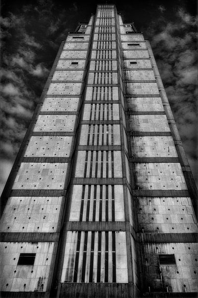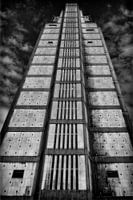 Stap in een wereld waar architectuur en sfeer samenkomen in een opvallend monochroom beeld. "Monolithische Opstijging" is een krachtige zwart-witfoto die de ontzagwekkende aanwezigheid van een torenhoog gebouw vastlegt, gefotografeerd vanuit een dramatisch laag perspectief. De compositie trekt de…