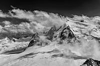 De vierduizend meter hoge Mont Blanc du Tacul (4.248 m), met een prachtige "wolkenvlag" in zwart en wit.