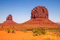 Monument Valley is een vlakte op het Colorado Plateau aan de zuidgrens van de Amerikaanse staat Utah met Arizona. Het ligt in het Navajo Nation Reservaat. Het landschap heeft als achtergrond gediend voor vele films. Hier is een prachtig uitzicht met twee van de beroemdste hoogten, East Mitten Butte en Merrick Butte. Een prachtig landschap om van te genieten!