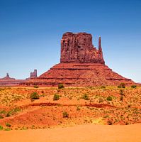 Monument Valley is een vlakte op het Colorado Plateau aan de zuidgrens van de Amerikaanse staat Utah met Arizona. Het ligt in het Navajo Nation Reservaat. Het landschap heeft als achtergrond gediend voor vele films. Hier is een prachtig vierkant uitzicht met een van de beroemdste verhogingen, de East Mitten Butte en de Merrick Butte. Een prachtig landschap om van te genieten!