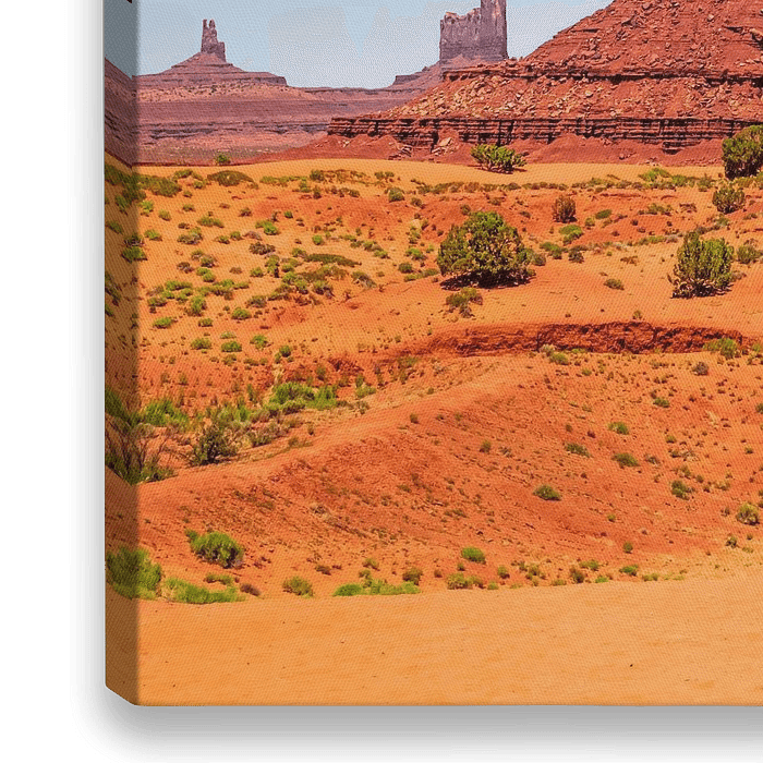 Monument Valley is een vlakte op het Colorado Plateau aan de zuidgrens van de Amerikaanse staat Utah met Arizona. Het ligt in het Navajo Nation Reservaat. Het landschap heeft als achtergrond gediend voor vele films. Hier is een prachtig vierkant uitzicht met een van de beroemdste verhogingen, de East Mitten Butte en de Merrick Butte.…