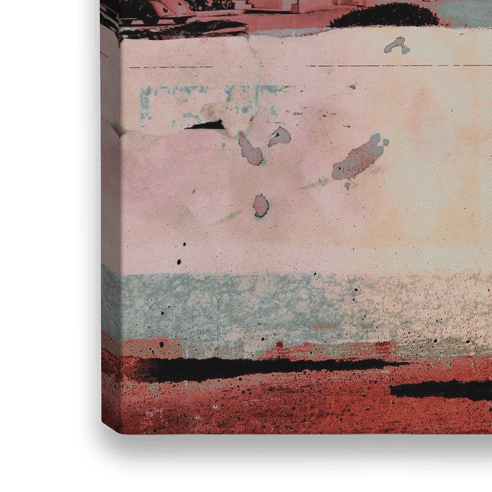 Een Amerikaans landschap van een motel langs de weg, in verschillende kleuren roze. Mixed media en assemblage op papier. Dit werk hoort bij de serie 'Vintage collages'. De collages zijn opgebouwd met allerlei foto's, plaatjes en afbeeldingen die ik in de loop der jaren heb verzameld. Als eerste schilder ik een ondergrond met aquarel of acrylverf en bewerk deze met stempeldruk, verfspatten en krabbeltekeningen. Daarop wordt de collage in lagen aangebracht en soms weer losgetrokken om een oud en verweerd effect te creëren. Door de lagen over elkaar heen aan te brengen ontstaat een transparant effect, zoals alleen met aquarelverf mogelijk is. De eerste lagen zijn zichtbaar door de collage lagen heen. De meeste collages zijn bewerkt met acrylverf, in de vorm van stempelwerk of gewoon overgeschilderd. Daarnaast gebruik ik vaak een balpen of potlood om op de collages te tekenen. Er zullen veel kleine details zichtbaar worden als het werk geprint is op een groter formaat.