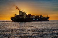 Deze foto van containerschip MSC Santhya uit Panama heb ik tijdens zonsondergang genomen toen deze voorbij kwam varen langs de kustlijn van Vlissingen en koers zette richting Zoutelande. Ik heb een serie geschoten maar deze zo proberen te timen dat de zon achter het imposante containerschip viel en het schip zo aan de achterkant zou uitlichten wat een mooi beeld opleverde. Ten tijde van het maken van deze foto zat ik bij het windorgel, een bekende plek waar mensen komen om te ontspannen, te kijken naar de zonsondergang maar ook de scheepvaart die daar de kustlijn op zeer korte afstand passeert. Soms komen schepen zo kort voorbij gevaren dat je als ijker bijna het gevoel hebt dat je de schepen kan aanraken, een mooie plek om te zitten en de scheepvaart te volgen. De zachte kleuren in de lucht maakte dit dromerige beeld voor mij compleet, een rustgevend krachtig beeld voor aan de muur !