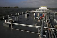Motortankschip GUADELOUPE tijdens de proefvaart op het Haringvliet bij het eiland Tiengemeten. 135 x 17,50 meter. Bevrachter: Intertstream Barging. Afbouw: Shipyard Trico. Aandrijving: Van der Velden Marine Systems