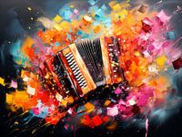 Wat zou de wereld zijn zonder muziek? Ontdek een accordeon in een kleurrijke abstract expressionistische stijl. Fantastische decoratieve enscenering met felle kleuren. Het motief is gemaakt in samenwerking met KI.