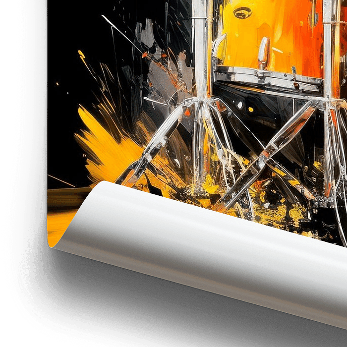 Wat zou de wereld zijn zonder muziek? Ontdek een drumstel in een kleurrijke abstract expressionistische stijl. Fantastische decoratieve enscenering met gedurfde kleuren. Het motief is gemaakt in samenwerking met KI.