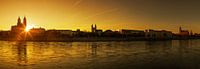 Panorama van de deelstaathoofdstad Saksen-Anhalt/Duitsland bij zonsondergang