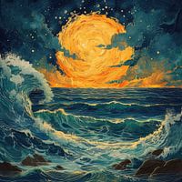 Ga op een hemelse reis met ons Maritime Moonlit Waves kunstwerk. Dit betoverende werk vangt de betoverende dans van oceaangolven in de zachte gloed van de maan. De harmonieuze samensmelting van zee en hemelse schoonheid creëert een serene sfeer die je uitnodigt om te dromen en troost te vinden in de kalme omarming van de nacht.