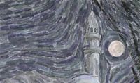 Abstracte aquarel van de volle maan achter de minaret van een moskee 's nachts