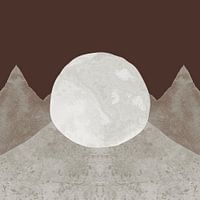 Een abstract schilderij van een berglandschap met een opkomende maan in Scandinavische stijl. Geometrische vormen in elegante kleuren als beige, crème, goud, oker en ivoor. Geef uw muren kunst en maak er een echt thuis van.