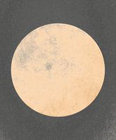 Een minimalistische abstracte voorstelling van de volle maan in zacht licht in neutrale beige kleuren op een donkergrijze achtergrond.