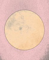 Een minimalistische abstracte afbeelding van de volle maan in zacht licht in neutrale beige kleuren op een roze achtergrond.
