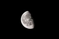 Maan met een duidelijk zichtbaar maanoppervlak in de donkere nachtelijke hemel. De maan is afnemend van volle maan.
