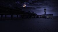 De maan over de Pier van Scheveningen. Dit is een compositiefoto van de Pier in daglicht in augustus 2014, en een foto van de maan vlak voor de maansverduistering van 21 januari 2019. Ik zat ook gewoon te spelen met Photoshop en zette die twee foto's over elkaar. Mensen van het strand verwijderd, vuilnisbak weg, de rest verduisterd om een nachtfoto te lijken en de maan er in gezet. Tijdens dat proces lette ik ook op de details: hier is een volle maan en een volle maan staat altijd recht tegenover de zon. Omdat ik deze maan vlak boven de horizon in westen plaatste kan je dus afleiden dat de zon dus vlak onder de horizon in het oosten moet staan. Er hoort dus al een schemering op te komen. En vandaar dat ik de toren van de Pier in de lichte schemering zette.