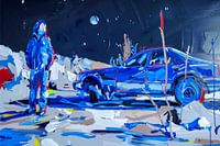 Excursie op de maan, schilderij als hoogwaardige kunstdruk.