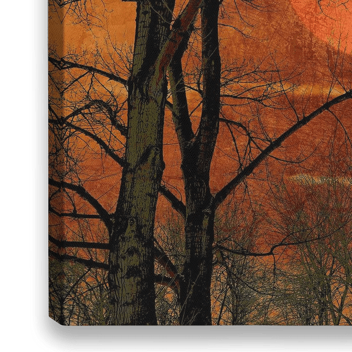 Koop dit abstracte kunstwerk Maan tussen de Bomen 2 Fantasie met Rood en Oranje. van Alie Ekkelenkamp als print op canvas, aluminium dibond, (ingelijste) fotoprint, behang en ArtFrame. Voor jou op maat geprint in Fine-Art kwaliteit.