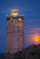 Terwijl de avond valt over Terschelling, verschijnt de volle maan aan de horizon .