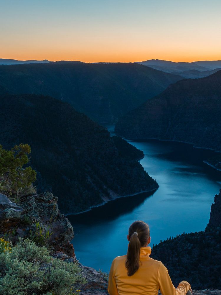 Maanopkomst bij de Rode Rivier in het Flaming Gorge National Recreation Area, Utah, USA