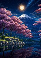 Over ‘Maanverlichte kersenbloesem Sakura Mount Fuji Japan Landschap’ van Ruzerin