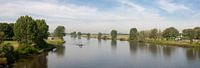 Den Bosch Noord-Brabant Nederland. A calm morning on the River Maas as a single pleasure craft sails upstream. Panorama View.