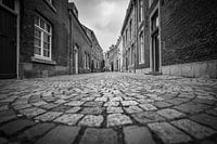 Een middeleeuws steegje in zwart en wit in het centrum van Maastricht, Limburg.