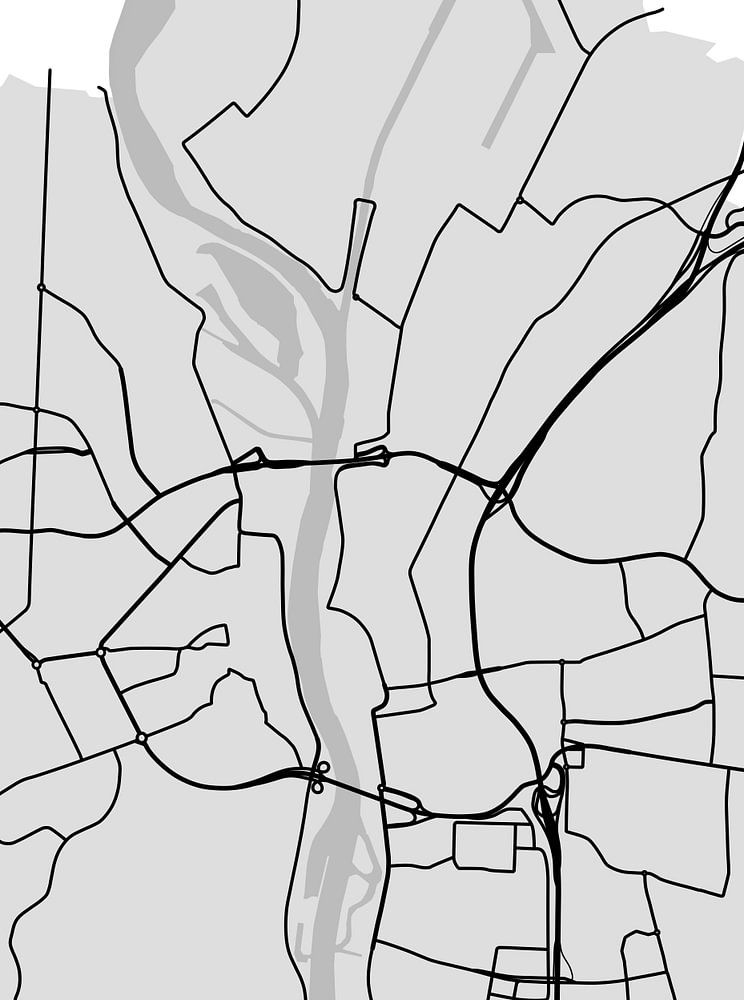 Een minimalistische plattegrond met de hoofdwegen van Maastricht, Limburg, Nederland.