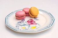 Macarons op Frans bloemenbordje. Lekker en fleurig voor in bijvoorbeeld jouw koffiehoekje. Een typisch Frans zoet koekje.