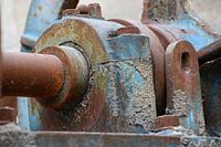 Detail van een verlaten machine in een marmergroeve nabij Carrara (Italië).