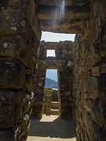Een doorkijkje in de ruines van Inca stad Machu Picchu in Peru, Zuid-Amerika. Wereld erfgoed monument op de UNESCO lijst