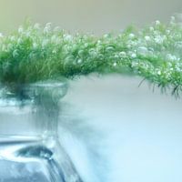 Dauw op een plantje, het bokeh komt van een speciale bokeh lens.