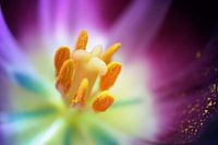 Een macro foto van het hart van een tulp.