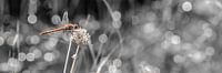 Macro Rode Heidelibel in kleur met zwart-wit achtergrond