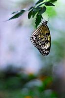 Een macro foto van een vlinder gemaakt met een speciale bokeh lens.