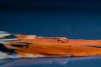 een leuke reflectie instaat. De waterdruppels versterken de structuur van de veer.