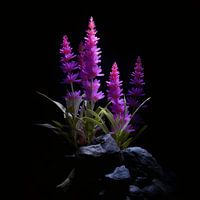 Betreed de mysterieuze wereld van bloemen die tegen een diepe, donkere achtergrond oplichten als levendige juwelen. In een schijnbaar nachtelijk landschap stralen paarse en roze bloemen als geheime parels, een feest van contrast en kleurrijk drama. De intense kleuren lijken te dansen in het schaarse licht, hun elegantie en pracht komen tot leven in de schaduw. Deze beeldschone flora lijkt te gloeien in de duisternis, een betoverend schouwspel dat de zintuigen prikkelt. Elke bloem is een kunstwerk, haar schoonheid des te indrukwekkender tegen de diepe achtergrond, een viering van contrast en natuurlijke gratie."