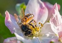 Koop dit bloemen kunstwerk Macro van een bezige bij op een appelbloesem van WSPictures op canvas, aluminium dibond, (ingelijste) fotoprint, behang en ArtFrame, op maat geprint in Fine-Art kwaliteit.