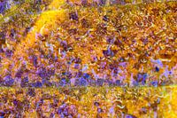 Macro van herfstblad in zonlicht. Er ligt een waterlaagje op het blad wat het een mooie vervorming geeft. Let op: door de beperkte scherptediepte is het vooral een sfeer plaatje waarin beperkte delen scherp zijn.